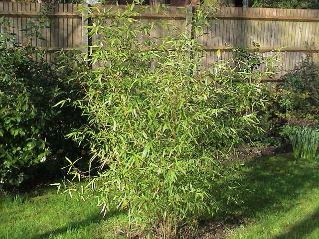called the Zigzag bamboo, it is clump-forming with slightly ribbed, slender, arching canes, bright green at first, turning yellow-brown to almost black with age. Leaves retain their colour throughout the winter. 2-10m* indefinite.