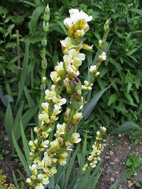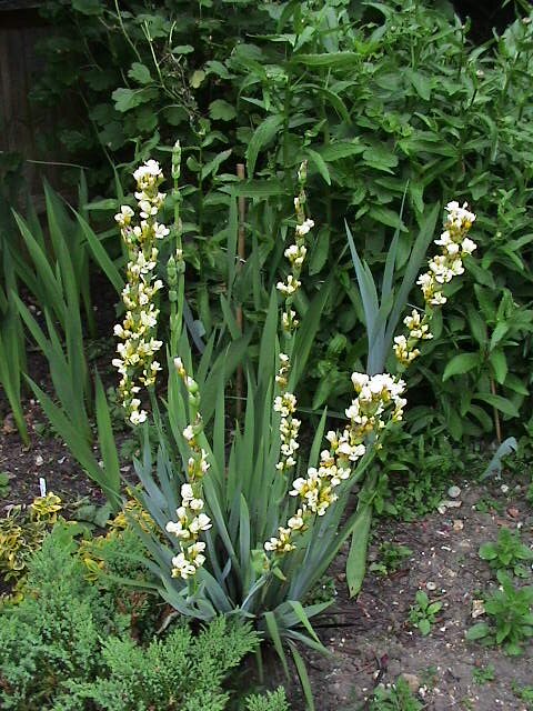 The leaves are sword-shaped and are grey-green in colour. The flowers are produced in profuse, creamy- yellow blooms. Grow them in full sun which is preferred and constant moisture along with good drainage is essential.