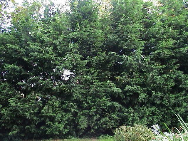 DSC02363.JPG: 2002-09-06 Connifer trees on border |